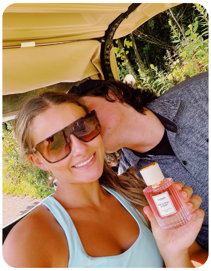 Para obtener los mejores resultados, aplica nuestro perfume en tus puntos de pulso, como las muñecas, el cuello y detrás de las orejas. El calor de estas zonas ayuda a amplificar la fragancia y las feromonas, permitiéndote irradiar un encanto irresistible y dejar una huella imborrable dondequiera que vayas.